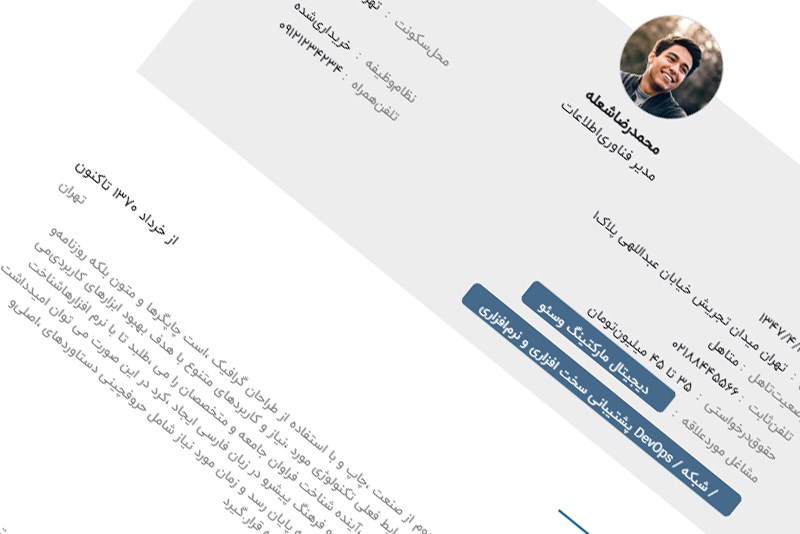 رزومه ساز آنلاین حرفه ای باش توانایی ایجاد رزومه استخدامی را در کمترین زمان ممکن دارد فقط کافی است مشخصات خود را در بخش های مختلف رزومه ساز وارد کنید و در نهایت رزومه خود را در قالب مورد نظر خود ایجاد کنید . رزومه ساز حرفه ای باش این امکان را به شما میدهد تا قالب رزومه خود را تغییر دهید و خروجی مورد نظر خود را دریافت کنید .